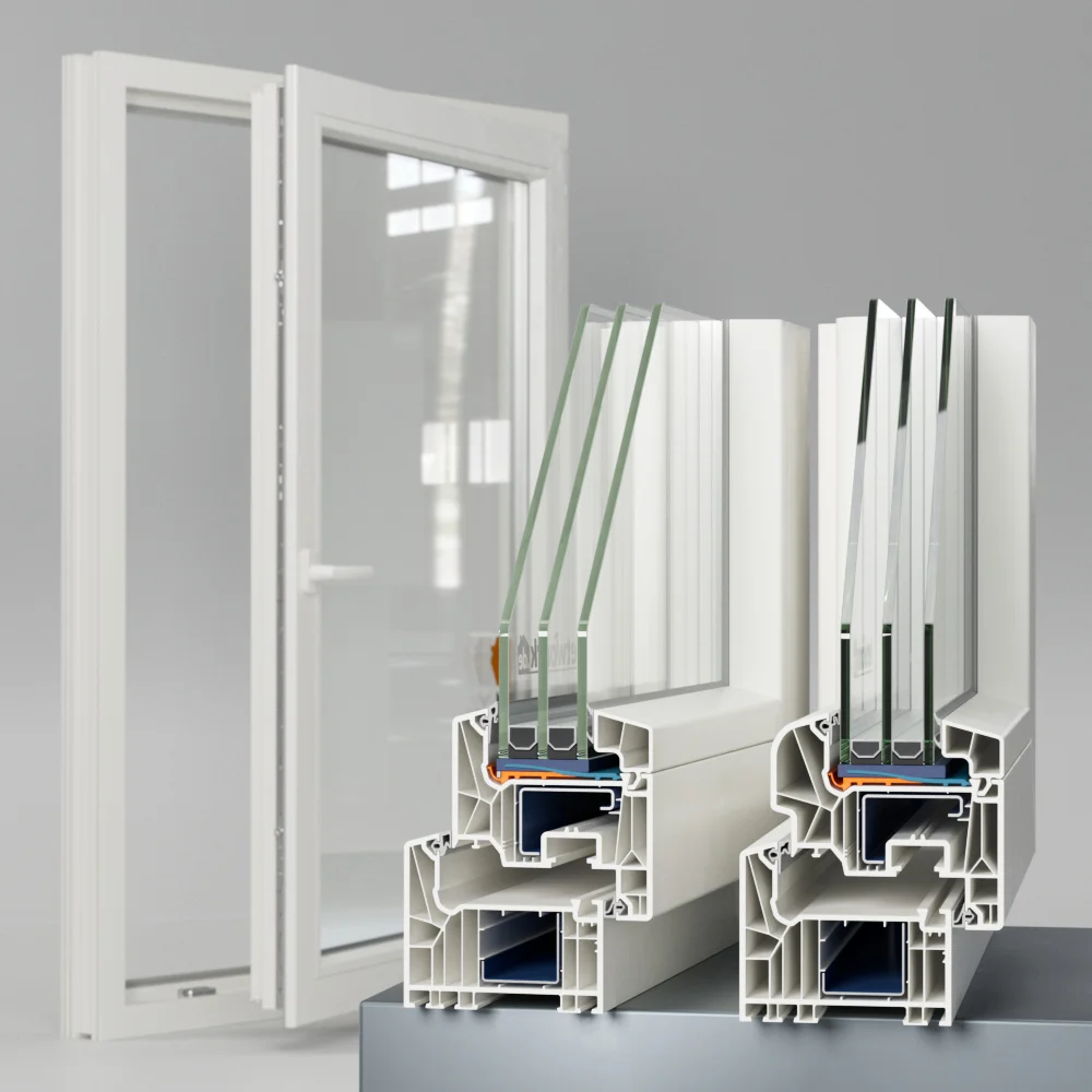 – 70 mm beépítési mélységű, öt légkamrás profilrendszer, melynek hőátbocsátási értéke Uf = 1,3 W/m2K
